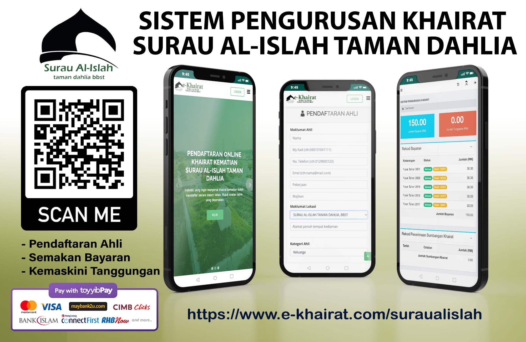 Anda boleh klik pautan pendaftaran ahli dan mengisi maklumat anda. Anda perlu menunggu kelulusan dari pentadbir khairat terlebih dahulu sebelum yuran pendaftaran dan yuran tahunan dijelaskan.